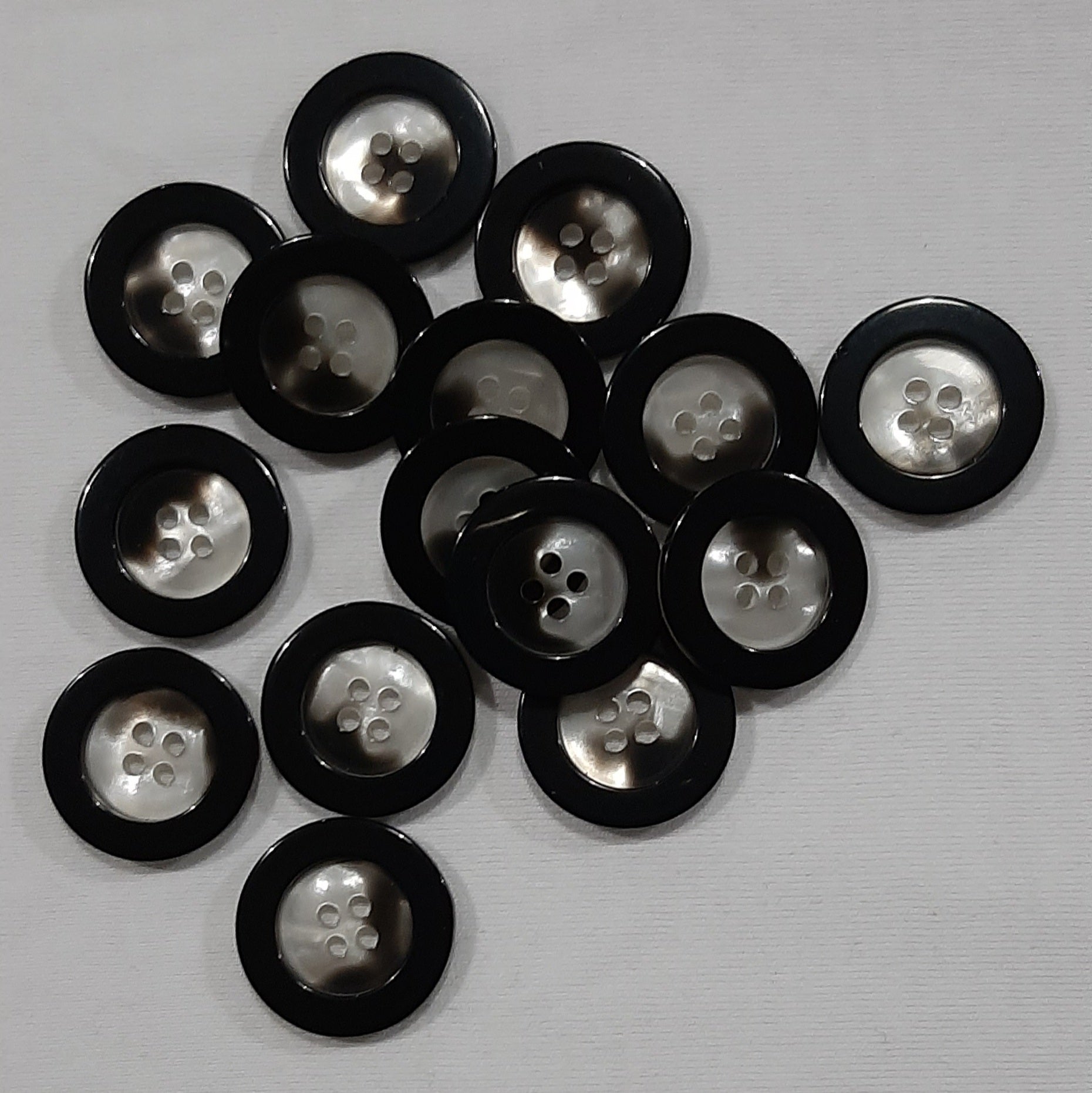 Button Singles - Plastic 22mm "Two Tone Black/Grey" by Cut Above