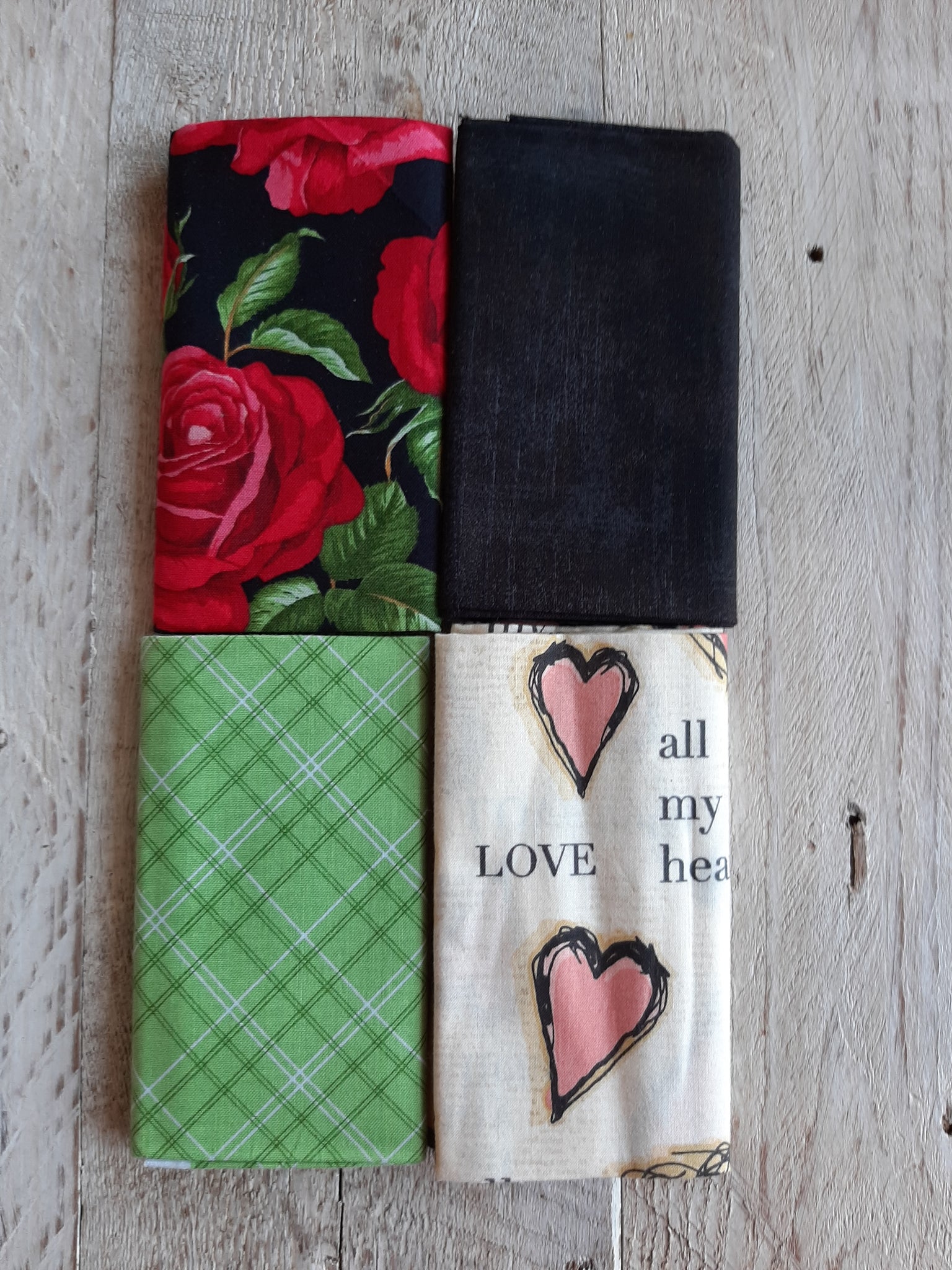 Four fat quarters in coordinating themes. Mixed ranges. All quilting weight, 100% cotton woven fabrics. Ex shop stock as new, may have slight marks, blemishes or fade marks from being displayed, price reduced accordingly.