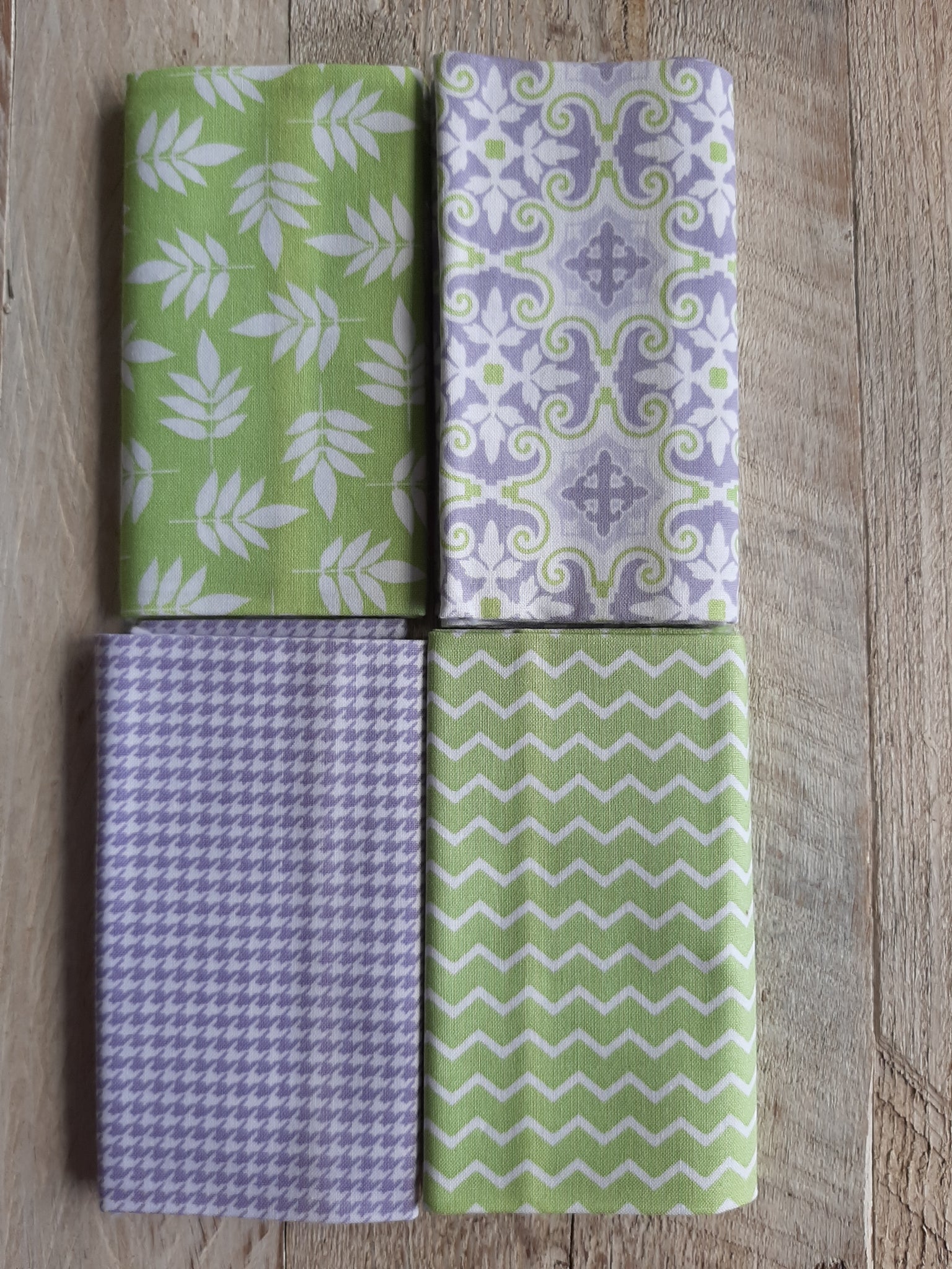 Four fat quarters in coordinating themes. Mixed ranges. All quilting weight, 100% cotton woven fabrics. Ex shop stock as new, may have slight marks or blemishes from being displayed, price reduced accordingly. Some fade marks.