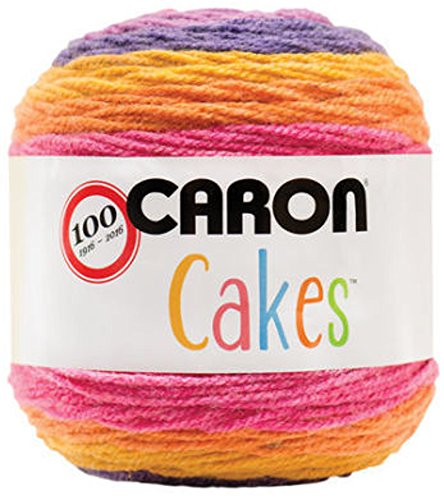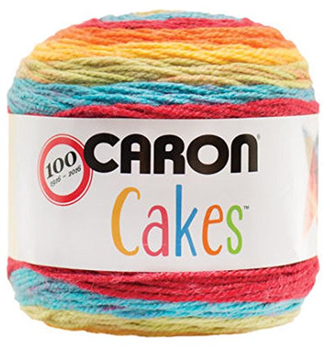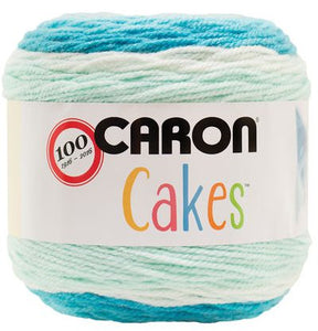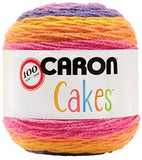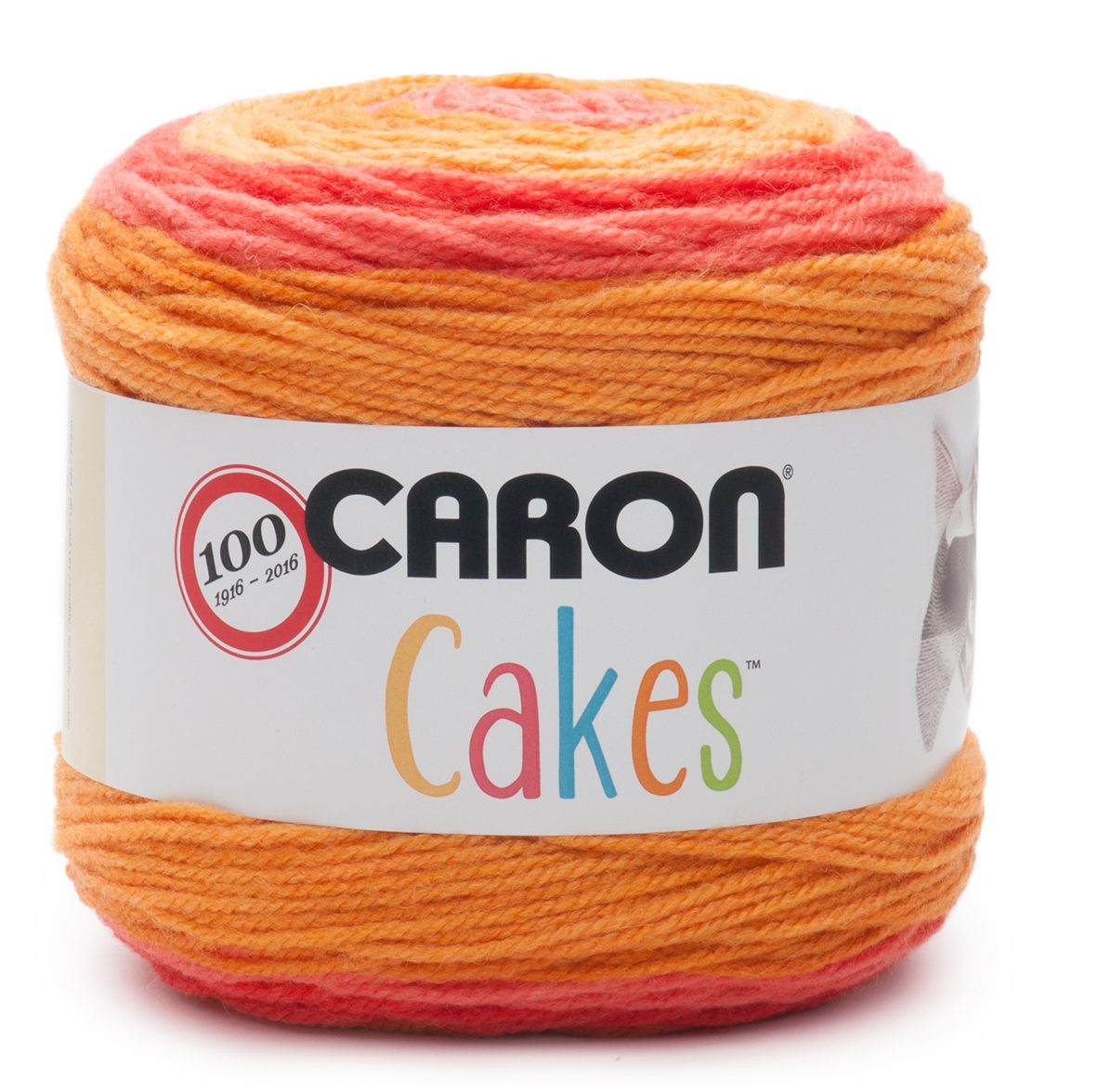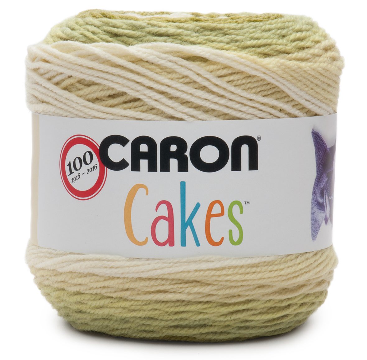 - With lots of yummy shades to choose from, Caron Cakes are perfect for blankets and garments. Made in Turkey from 80% acrylic and 20% wool blend. 200g/350m per cake and equivalent to a 10 ply Aran weight. Recommended needle/hook size 5mm.