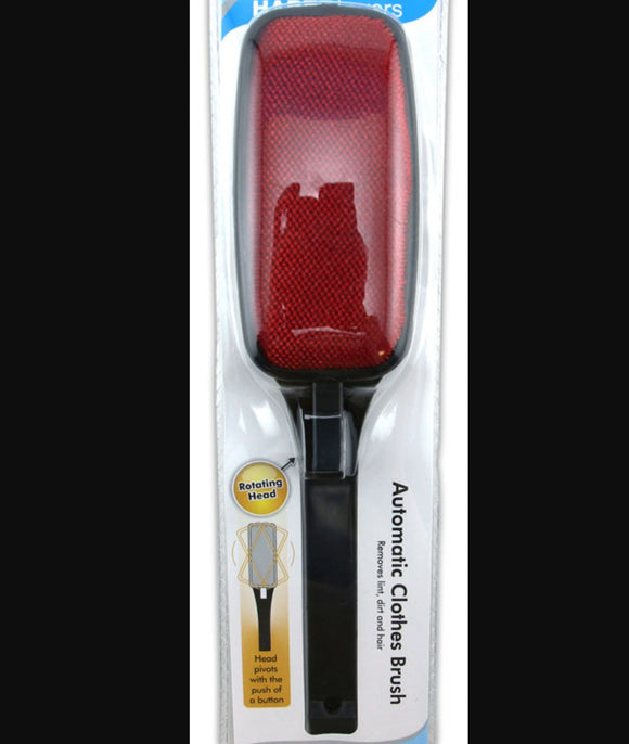 Automatic clothes brush removes lint, dirt and hair. Head pivots automatically with the push of a button. Packaging may vary from image shown.